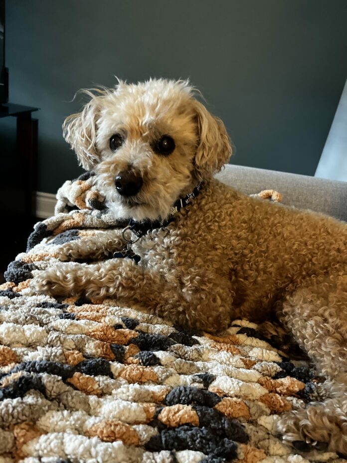 About the picture: “Hi Garth:  Long time reader, and had the pleasure of speaking to you once,” writes Greg. “Attached is a picture of our mini poodle Cosmo. Cosmo recently turned 14. He is always alert to protect us from squirrels and the mail man, much like how you try to protect us all from bad financial decisions. Thanks so much for your great advice over the years.”