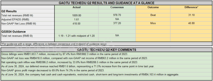 Earnings Snapshot: Gaotu Techedu misses bottom-line estimates; tops revenue estimates; initiates Q3 outlook