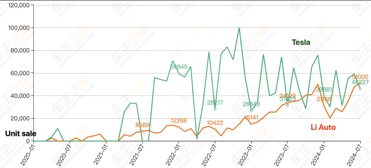 After a few months, Li had demonstrated its ability to innovate and execute, regaining its top spot on the Chinese leaderboard for new energy SUV sales while also quickening the pace of increase in unit sales. This implies that the company has a strong brand and has effectively increased its market penetration in lower-tier pricing. In July 2024, Li Auto’s unit sales exceeded Tesla China’s (NYSE:TSLA), according to Autohome. (see chart below)