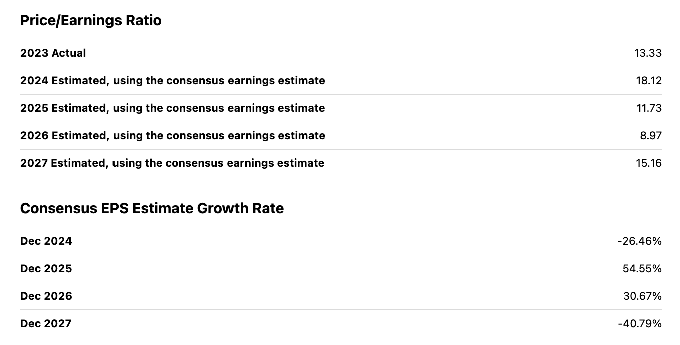 According to Seeking Alpha, Li Auto’s stock had a forward 2024 P/E ratio of 18.1x. Analysts predicted that EPS would fall by 26% in 2024 and then increase in 2025.