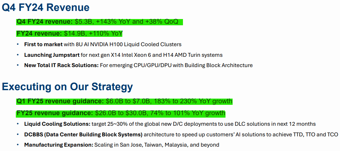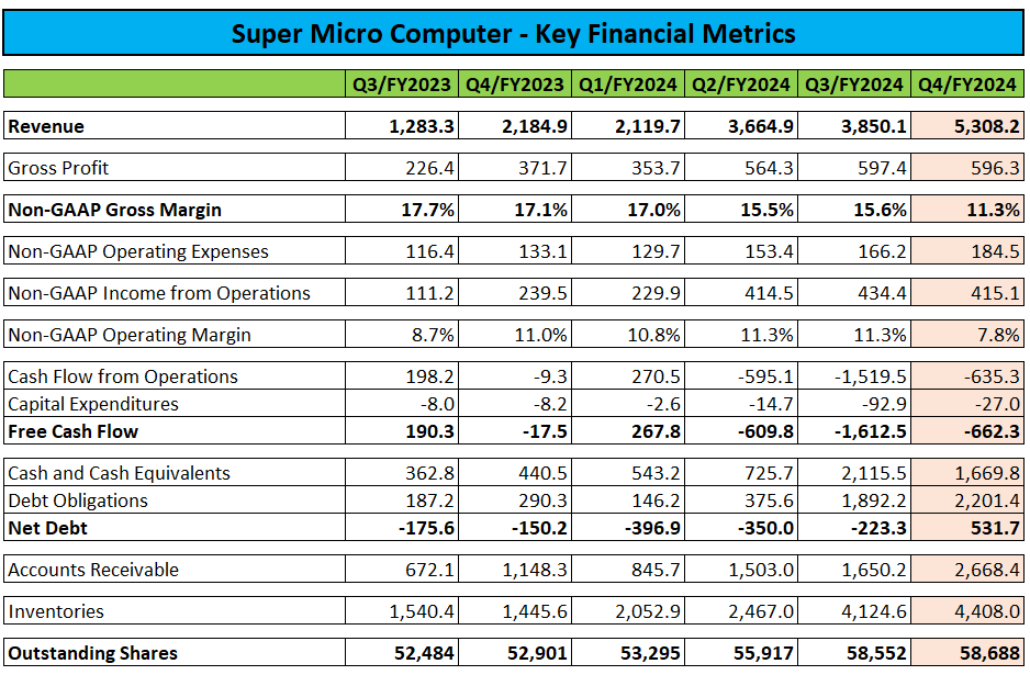 While Super Micro finished FY2024 with $1.67 billion in cash and cash equivalents, expectations for further exponential growth will likely require the company to raise additional funds in the not-too-distant future: