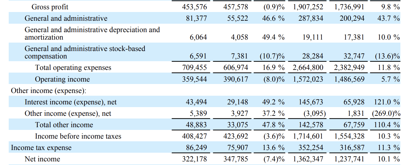 Moving down the income statement, operating expenses rose by 16.9%, driven by nearly 50% growth in G&A costs.