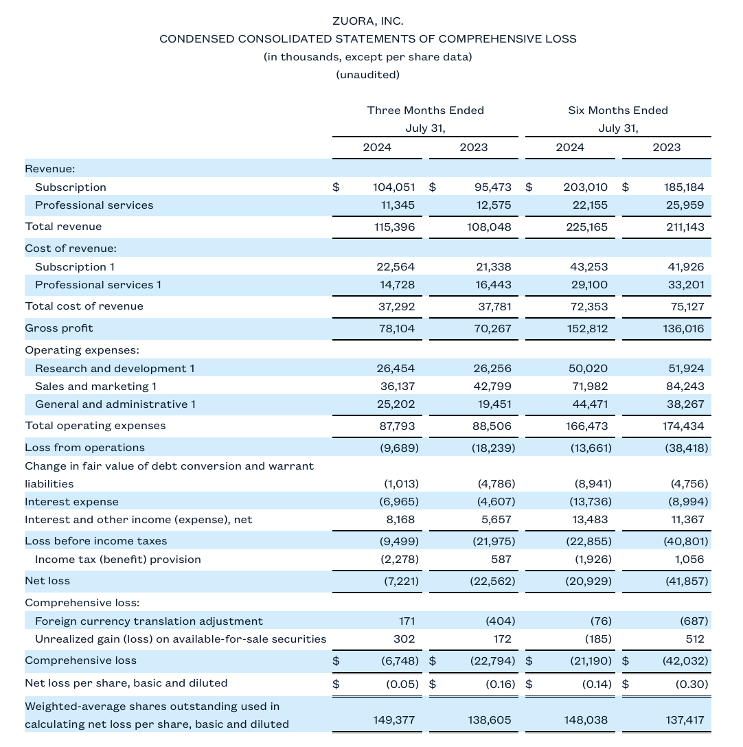 Let’s now go through Zuora’s latest quarterly results in greater detail. The Q2 earnings summary is shown below: