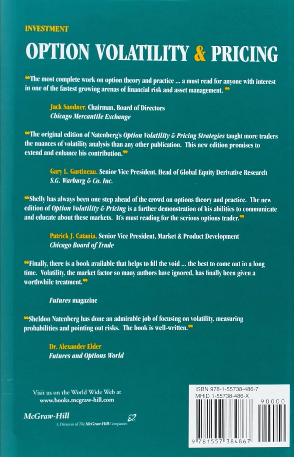 Written in a clear, easy-to-understand fashion, Option Volatility & Pricing points out the key concepts essential to successful trading. Drawing on his experience as a professional trader, author Sheldon Natenberg examines both the theory and reality of option trading. He presents the foundations of option theory explaining how this theory can be used to identify and exploit trading opportunities. Option Volatility & Pricing teaches you to use a wide variety of trading strategies and shows you how to select the strategy that best fits your view of market conditions and individual risk tolerance.