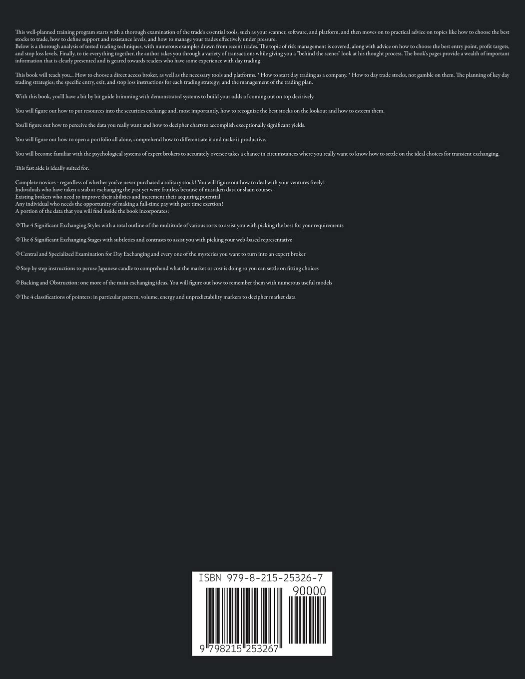 This book will teach you… How to choose a direct access broker, as well as the necessary tools and platforms. * How to start day trading as a company. * How to day trade stocks, not gamble on them. The planning of key day trading strategies; the specific entry, exit, and stop loss instructions for each trading strategy; and the management of the trading plan.