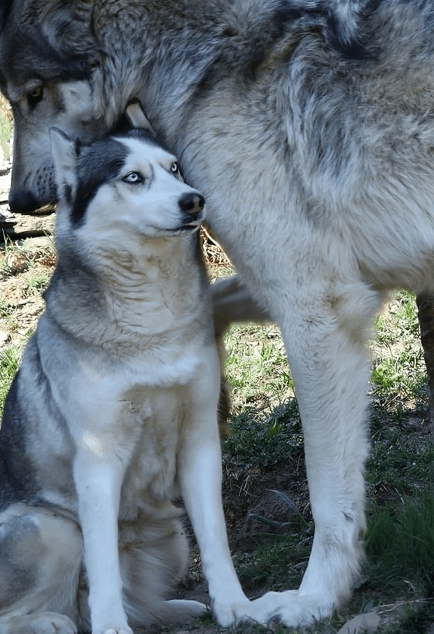 About the picture: “Full grown husky with a full grown wolf,” writes Glenn. “People don’t think of wolves as all that large because Hollywood uses huskies to portray wolves in movies and TV. Those of us lucky enough to get up close to wolves in the wild know the difference tho… Use it or just enjoy it.”