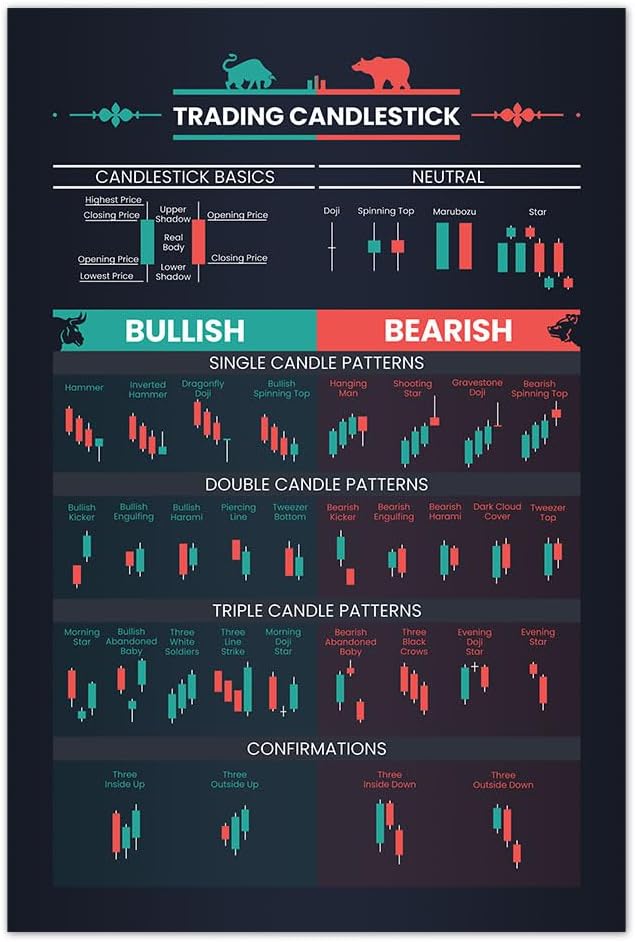 Enhance your trading prowess with our Candlestick Pattern Cheat Sheet poster! Unlock the secrets of market movements and empower your decisions with visual cues on candlestick patterns. Whether you’re a novice or a seasoned trader, this poster is your ultimate companion for mastering the art of technical analysis. Illuminate your trading journey today.