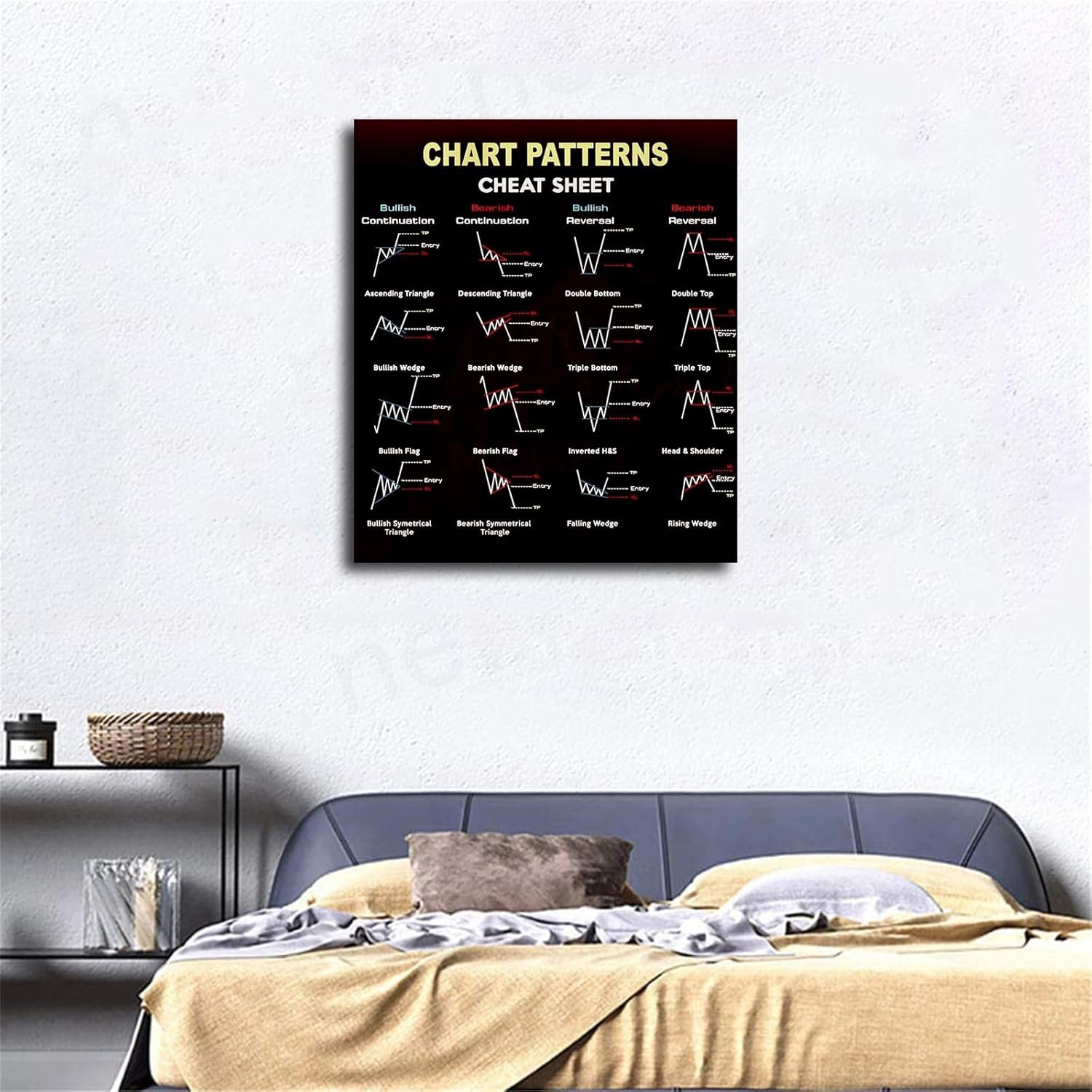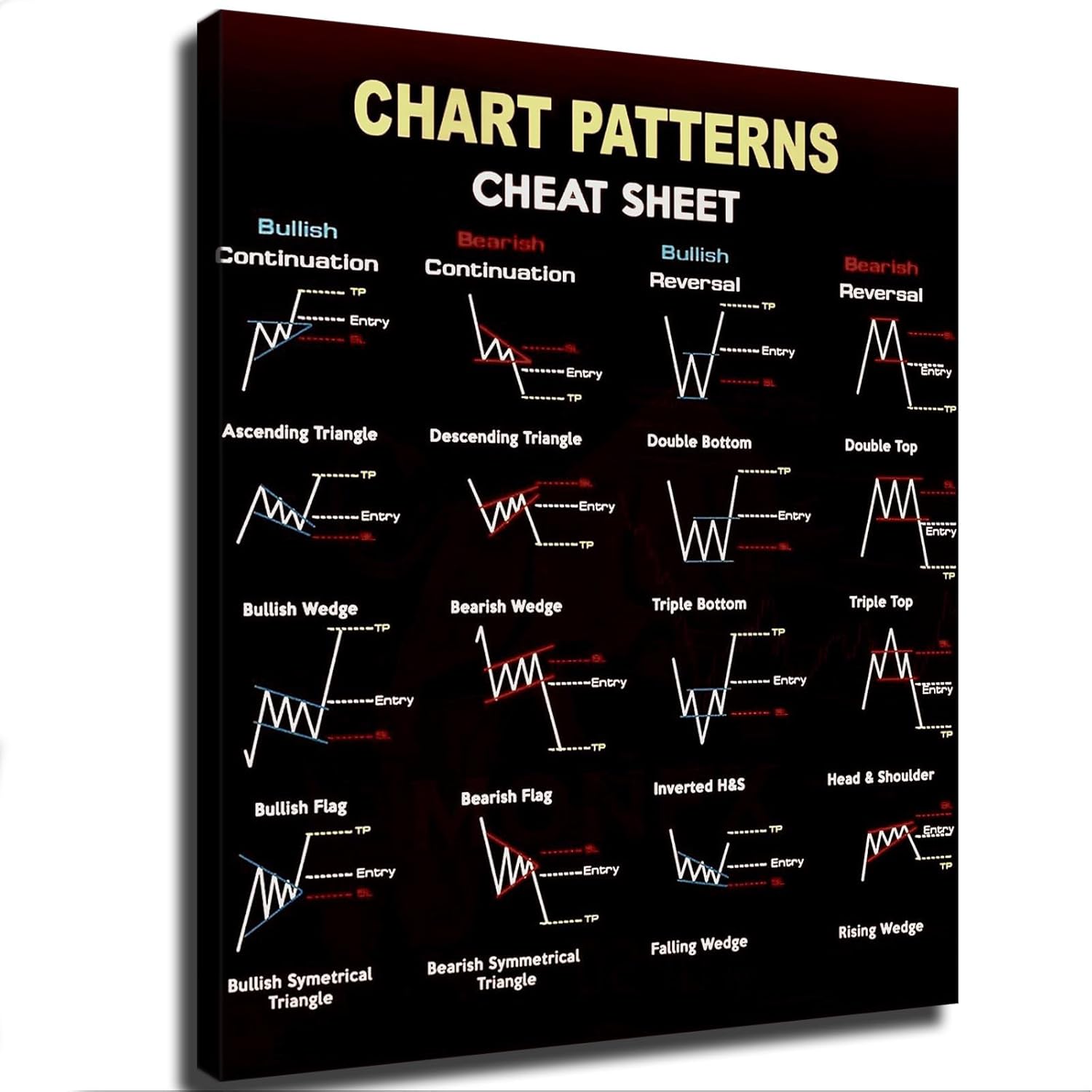 Quality materials:Stock Investing Stock Chart Candlestick Pattern Trading for Traders Poster use high-quality canvas, after each careful printing process presented on the canvas, in order to make our products more able to restore the essence and authenticity of the picture, wood frame selection of pure wood.