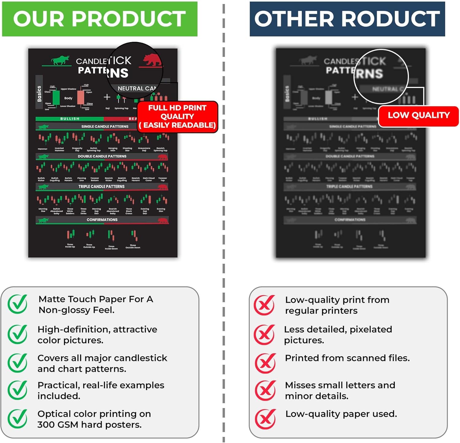 High-Quality Printing: Each poster is printed on premium 300 GSM paper, ensuring long-lasting durability and clear, vibrant visuals that make learning and recalling trading patterns easier.