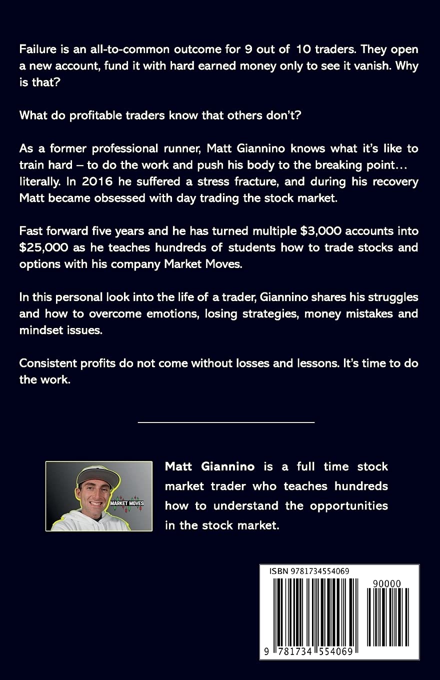 Failure is an all-to-common outcome for 9 out of 10 traders. They open a new account, fund it with hard earned money only to see it vanish. Why is that? What do profitable traders know that others don’t? As a past professional runner, Matt Giannino knows what it’s like to train hard – to do the work and push his body to the breaking point… literally. In 2016 he suffered a stress fracture, and during his recovery Matt became obsessed with day trading the stock market. Fast forward five years and he has turned multiple $3,000 accounts into $25,000 as he teaches hundreds of students how to trade stocks and options with his company Market Moves. In this personal look into the life of a trader, Giannino shares his struggles and how to overcome emotions, losing strategies, money mistakes and mindset issues. Consistent profits do not come without losses and lessons. It’s time to do the work.