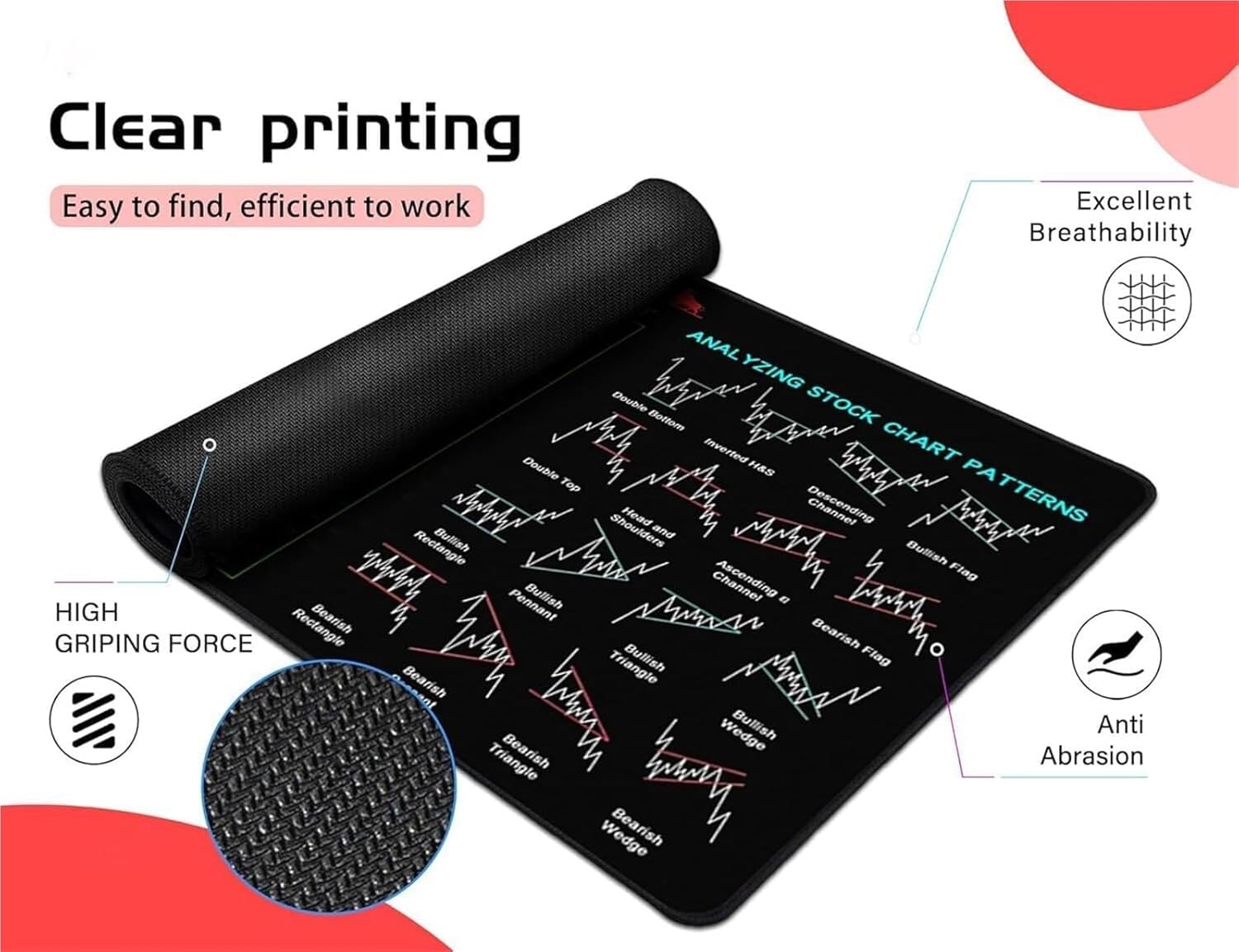 Trading Mousepad with Invest Day Trading Chart Patterns: The smooth fabric surface ensures precise mouse movements, ideal for trading computers, gaming, or general office use. Perfect for stock market analysis, spreadsheet work, and trading strategy planning
