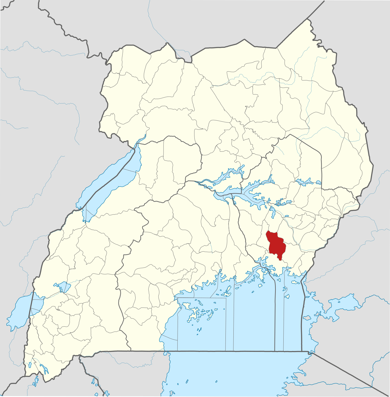 - Location of Iganga District in Uganda. (OpenStreetMap contributors, Jarry1250, NordNordWest)