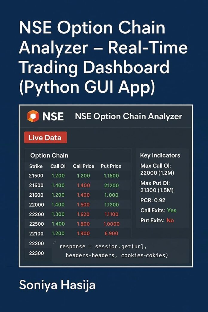 In this book, you’ll build a fully functional NSE Option Chain Analyzer from scratch – a powerful desktop application that fetches live data from the National Stock Exchange (NSE), tracks key indicators like PCR, Max OI, Support/Resistance, and updates a live dashboard every few seconds.