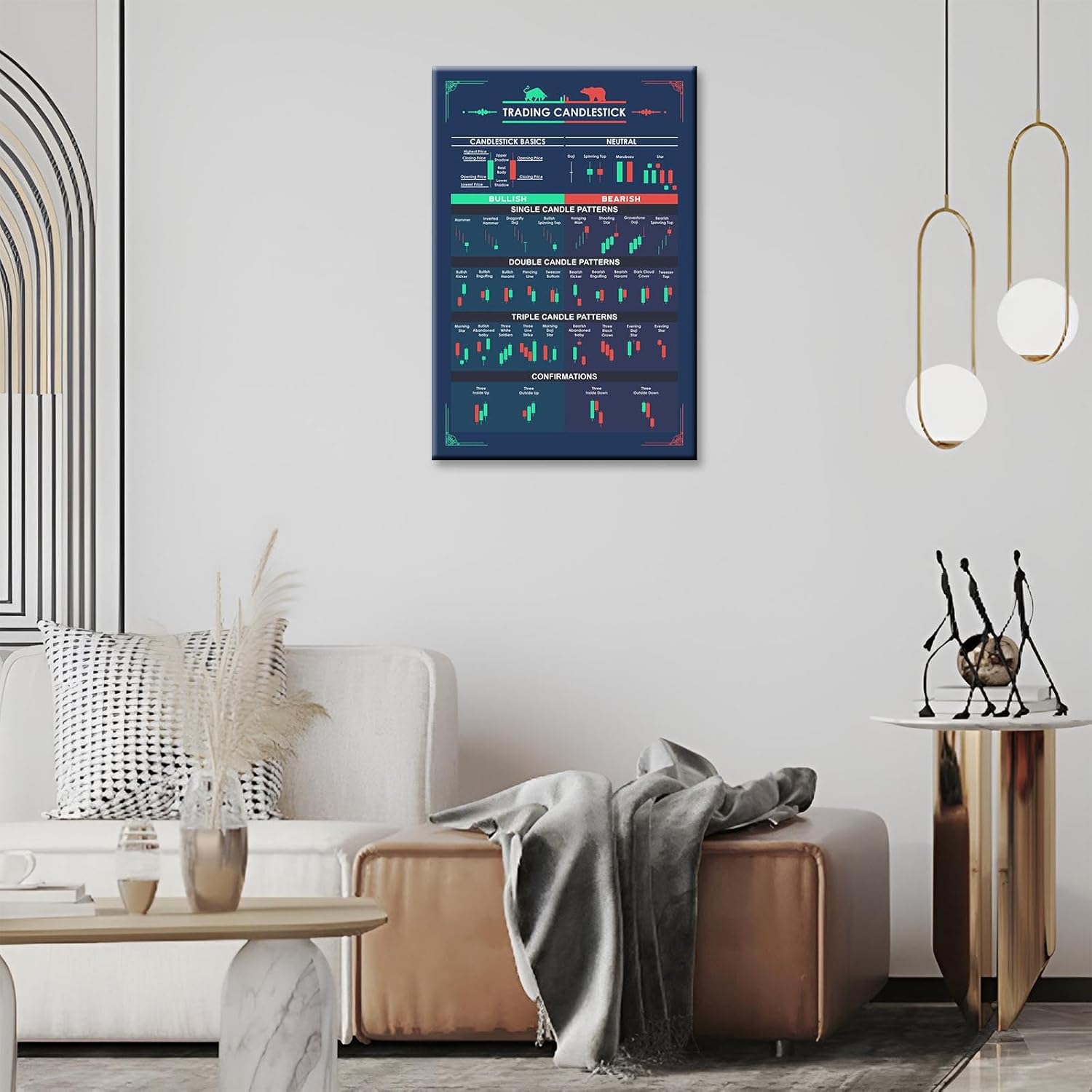 Candlestick Patterns Trading Poster printing on high quality canvas. It is very vivid, dustproof, waterproof, easy to take care and never fades. featuring meticulously crafted designs that embody the essence of beautiful art style. HD solid color canvas can be gently wiped with water, which are better than paper posters